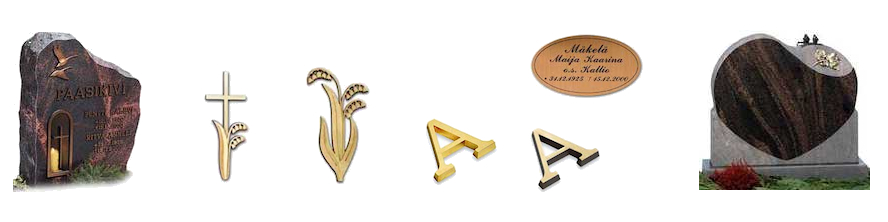 Laatat ja koristeetSaatavilla laaja valikoima muistolaattoja sekä koristeita hautakiviin.